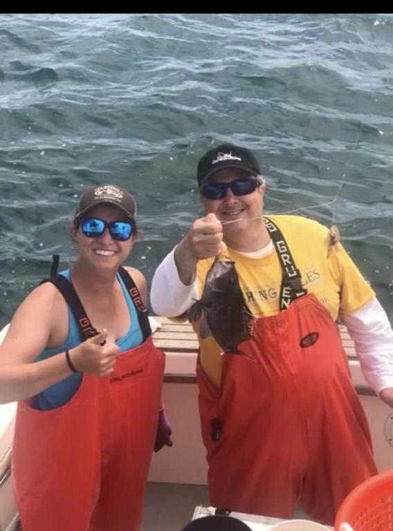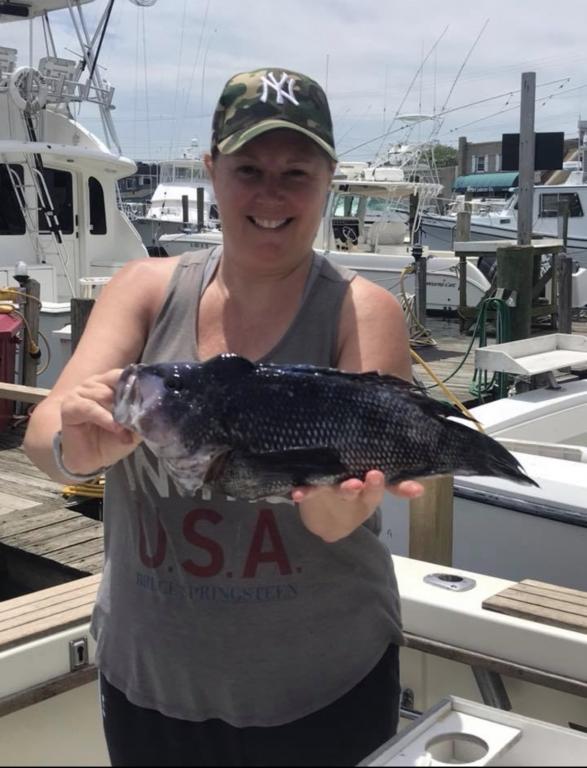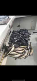 Had the current wife , Ice Cream Bill with Vic " The Machine" and his 2 buddies Day started off extremely foggy and we bit cool believe it or not but eventually the sun came out and the fog burnt off. I never saw so many fish on the fish finder that didnt want to bite. We averaged about 10 keepers an hour with all the just short shorts to keep you busy in between and grinded it out till noonish. Than they put on the feed bag when the fan turned on. It was fishy polusa , funny thing that last hour I couldnt get a keeper but everyone else around me did. Capt Ron encouraged me with positive projection and kind words of support that just kept me going till the end. Ron you can be a motivational speaker , Tony Robbins has nothing on you - .When the fan turned on it started to get a little sporty but we all hung in there and even returned a little early safe and sound.Combo of some of the freshest clams I ever used and gulp were on the menu for the day We had a great day limited out made some new friends and will definitely be back . Stephanie the mate was fantastic and took the time to show my wife how to set the hook " funny she listened to her and not me " and we said the same thing - . The Wife is holding the Seabass and I cant make her smile like that - ![]() The boat handled fantastic with the sporty conditions , Capt Ron runs a great boat and one of the cleanest bathrooms I ever used at sea. Also he has a great work ethic that will put you on the fish and does not care how much bait you use,he kept encouraging everyone keep changing it up. Do yourself a favor and hit the Rock Bottom and you will not be disappointed Cant wait to get back in a couple of weeks and the PP Elks GDubs- ![]()