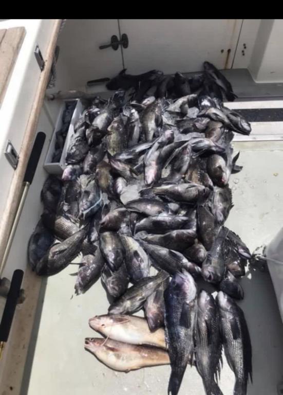 Haven’t been on the site since we fished on Saturday. Much thanks for a great trip; my first time on Rock Bottom Charters. Had an amazing time with you and your daughter Stephanie (mate). Conditions got sporty real fast with hard East winds yet we still managed a full boat limit of tasty sea bass! Was so much fun fishing with GDubya & his wife, Vic Nava and his two friends. Thanks again for a great time! Bill |
