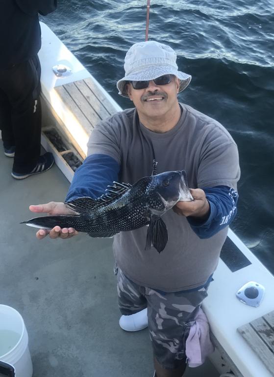 Had tony and his crew out for seabass. Took a couple spots but then it was all you wanted with doubles almost every time down. Got our limit quick and tried for a few more ling before the wind came up but only found more seabass so we headed back early.