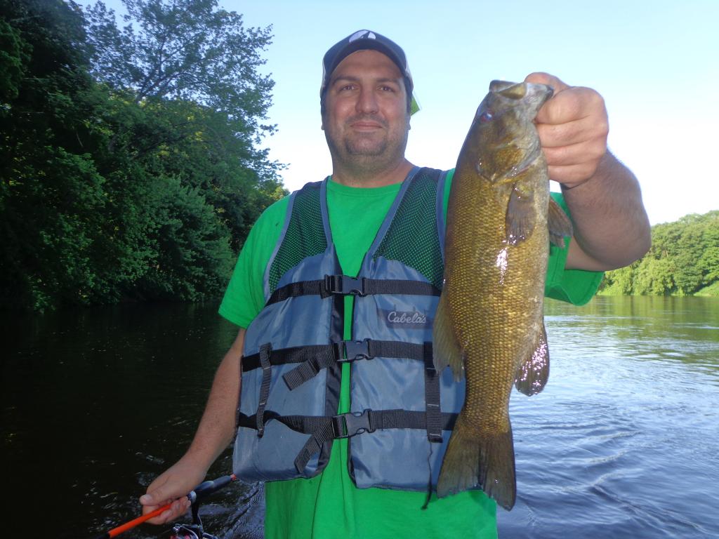I did a float trip today on the river. It was tough fishing with fast brown water and wind. I caught 9 smallmouth, a walleye, 6 rock bass and 2 red breasted sunnies. Everything was on plastics.