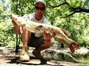 Flu symptoms since Wednesday! Sore ribs, back, throat, neck and glands! Fever last night broke this morning. Not much strength the last couple days after going to work. Got out today for a few casts and didn’t see much moving. Some of the boys have been pounding theses stretches of water. Finally came up to a small spot that always produces. 2nd cast 32-33ish incher! Great fight even though the fish looks like it was caught recently. Plugs plugs plugs!!! Just be careful when unhooking the fish and make sure you have a net for these river beasts. I’m seeing way to many fish with parts of there jaws missing and one eye these days. It’s like I’m fishing for zombies!!!!!! TIGHT LINEZ!!!