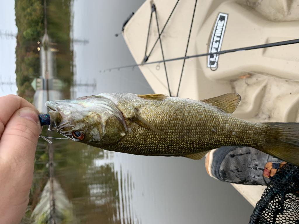 Hit Splitrock reservoir at sunrise this morning for some fishing. I’ve been neglecting the sweet water recently, so I threw the kayak on the car last night and drove up to the launch early this morning. On the water by 7, it was stained brown and warmer than the air temp. The plan was to fish spinnerbaits, jerkbaits and Ned Rigs for whatever was biting. Fourth cast I get a dink smallie on the ned rig, a good way to start the morning!