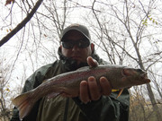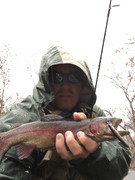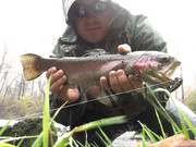 Well the original plans was to head north this weekend with eddie but the mrs had other plans for me this weekend.... once in a while I let her win. Got done with the honey do stuff Saturday and hitched the mamba up and headed west. Got to the ramp and had about two hours to fish before dark. Ended up with 2 small eyeballs. Few fish around and dropped a good one on the way up but that was it. Sunday I knew it was gonna be crappy out but I wasn’t going to sit home and watch hallmark Christmas movies with the mrs all day! No sir! Not this guy!!!! Headed west again to the mighty peaquest in the pouring rain. Suited up and ended up going 4/8 on rainbows had a few swipe and miss along the way too. I was able to stick it out until 12:15 then the river turned and went to crap.