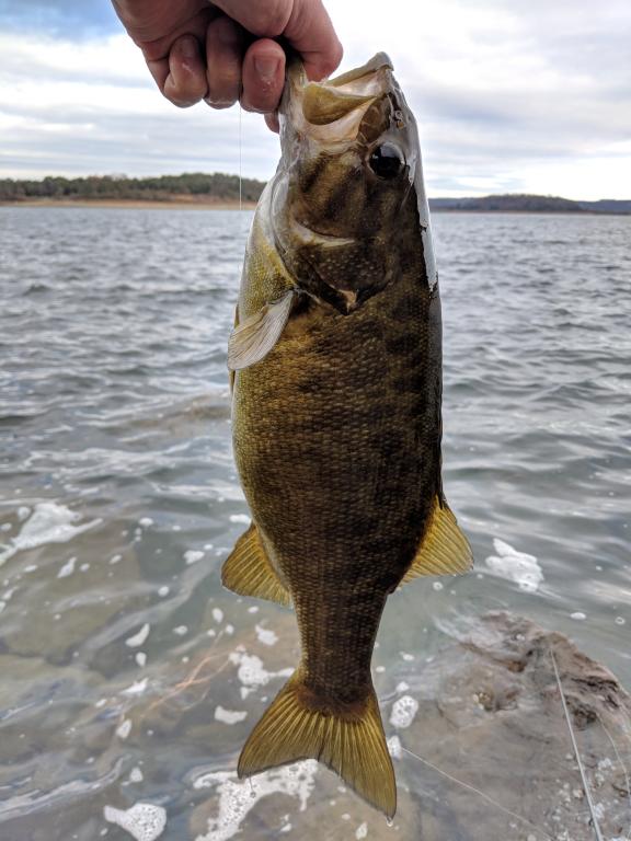 Caught a few SM Bass as bonus today while searching for the Laker. One was a chunky 2lber. Wind was blowing a little, it was cold but perseverance paid off!