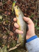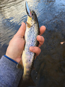 I Ventured out to some new turf to me this morning super close to home. Drove few mins down the road to hit the first spot, last week I had a nice size fish swipe at the plug and miss, today I went back and first cast I stuck him this time! Nice brown... cool! Start working my way down river here and there everything’s great all sudden ughhhh where’s my rod???? Apparently somehow it flew out the back my truck???!!! Yeah ... so if anyone finds it let me know lol if not and u wish to keep it MERRY CHRISTMAS PAL!!! So off to Walmart picked up a decent cheap shimano set up and go back to the scene of the crime. Met up with eddie and skunk for a bit but I had better luck earlier in the day upstream so back I went. Worked Along ways down stream fishing every pocket/ seam /pool I could... picked away at some nice wild browns and some good looking bows also. Hopefully the weather cooperates the next weekend or so and we can jump in the boats one or two more times before we get the hard water.