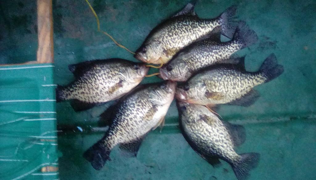 I went out on the cong today to see if i could get some more fish for my food supply in case the situation gets worse with this viral outbreak. The crappies were where i left them on the 15th. They were chasing baitfish at one of my spots so they were easy to locate. Again i used the jig-n-bobber method. The jigs of the day were mini mites, black rufus jr with gulp minnow and a homemade deer hair with pink feather. That jig was tied by one of my fellow kdc members(thanks to Jim Moloney for that) he did a great job the crappies love it. Also i noticed some perch eggs near the shore where i launched my canoe, it seems early to see that. The slow roll and the simple twitch and rest method did the trick.Some of the larger crappies had herring in their stomachs while the smaller ones had water bugs in them. The fish in the photo are between 12 and 13"