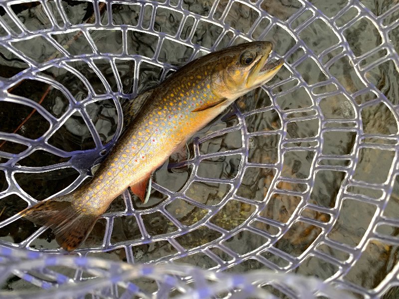 Come up on one hole and saw a couple fish and thankfully got the biggest (maybe 7-8 inches max) of them to bite, a beautiful native brookie.