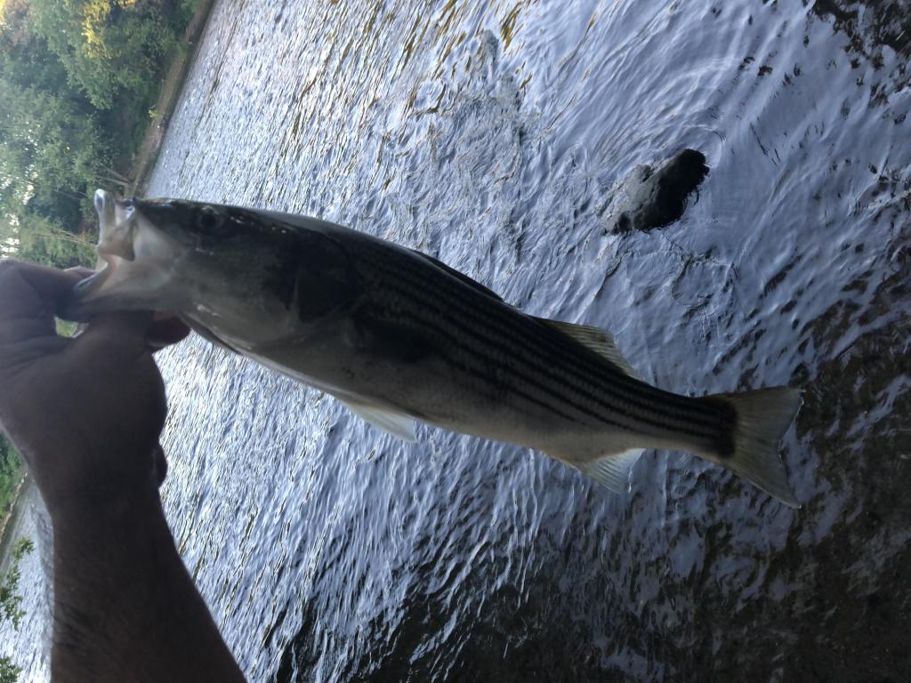 finally got into some fresh water Stripe bass at the local river by my house nothing big but pick up 3 this am all the same size about 24 inches