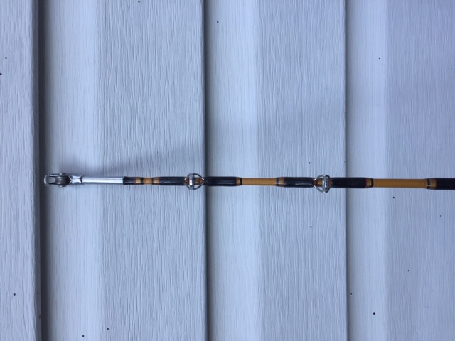 The silver pieces have a couple of scratches on them, otherwise a great rod. 50-80lb class. $100 |