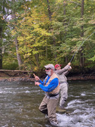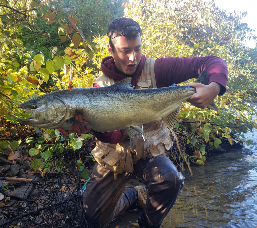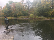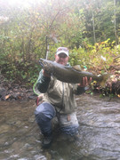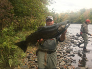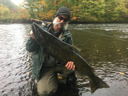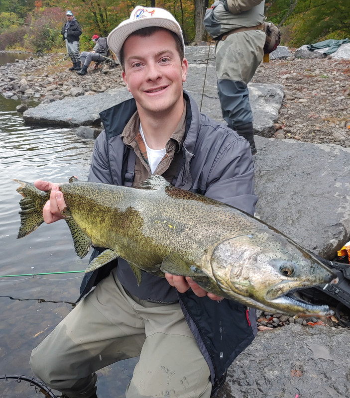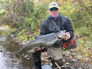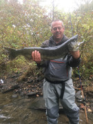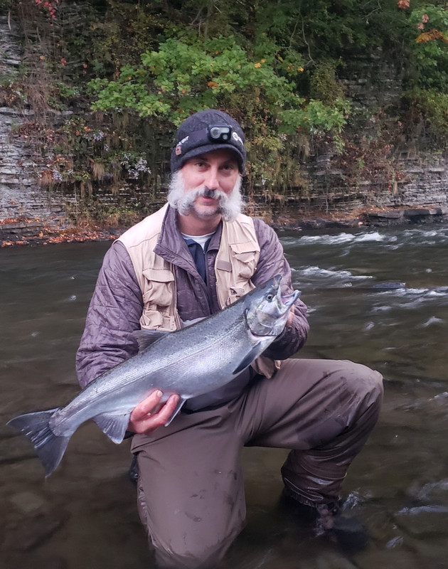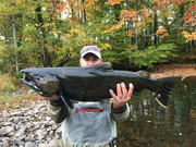 So I headed up last Friday to do some prospecting... fish were holding in the deep pools and would empty out during the day and replenish at night. Definitely a slow year compared to years in the past but we had the all star crew and found plenty of fish to keep everyone exercising. With a little session I had the rookies dialed in and it was game on. We fished Down low, middle river and up high, we even found a few fish in the creeks but they were picked out quickly by the local boys. With the water being low light leader and to find out where the fish were running in the pools was key this year we found one or two steelies and a brown or two between all us but we tried. The Njf guys don’t mess around that’s all I know Nick was first to strike first time up first salmon,lukeyboy was shortly after and Scotty even finally ditched the spinning rod and went fly landing his first king and coho on the fly. U guys did great for first timers. Glad I was there to see your firsts. We have some work to do with the netting but we’ll get you there! Just be glad they weren’t steelhead!!!! Hope you all can make it back next year, and we can put something together for steelies and browns....