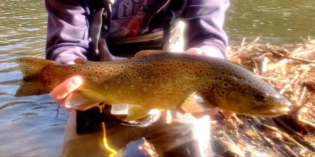 Saw some optimal conditions at a stream in NY so I took the drive. The action was great, and I had 14 wild browns, with only 3 under 16", and a rare wild brookie. Had to stop on the way home in NJ to complete the trifecta.