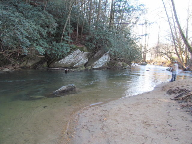 Took the 3 hour drive out to the Mitchell river in Dobson North Carolina. In Pennsylvania we refer to these as "creeks " or "criks" Really pretty area. I guess being a Sunday morning with temps in the 50's drew out the crowds, wand wavers were pounding fly line in just about every hole. Not sure how you can stand in gin clear 12 inch deep water and pound fly line on the water and expect to catch fish ??? I did manage 2 small browns and had lots of follows.