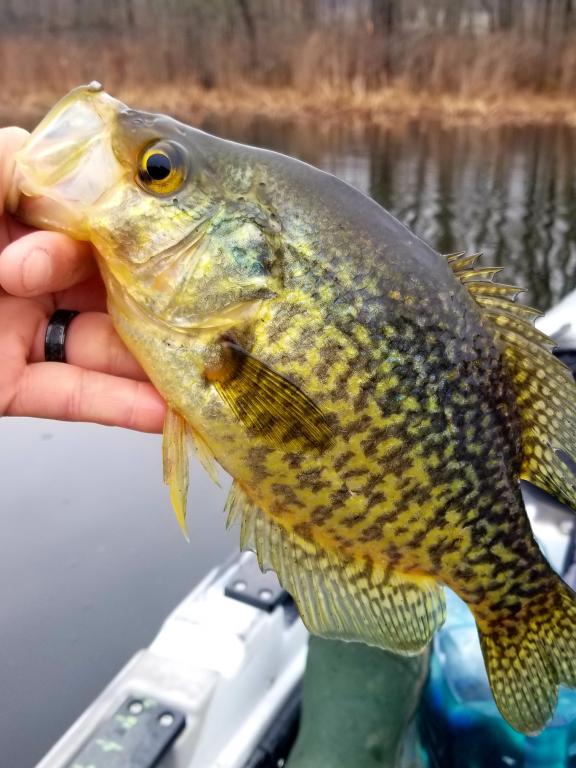 Follow up. Hope NJ. Water temps were prime for a pre spawn bite.... 55 to 56F. Landed bout 60 fish between 3 people on yaks. Same 1/16th jigs but with chartreuse gulp minnows this time. 3 to 5ft of water. The spawn will begin any day now I think...