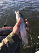 Sunday me and duck or bleed teamed up in the mamba and worked the big pond looking for a good trout to weigh in.... we set the spread out and kept it simple with 4 boards on each side and both downriggers going. Rapalas and spoons did the trick on flatlines and 1 colors. We ended up with plenty of trout but only one good one worth weighing in, that placed fourth just outta the money. We lost three good fish too so that hurt us but we’ll be back next year! Congrats to all the winners and my buddy Matt’s son Justin that took 3 rd place pickerel ![]()