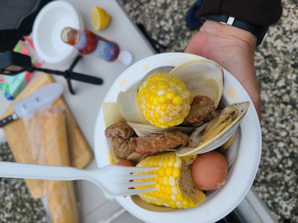Hit the clamming grounds recently with a couple friends, one who drove seven hours from the Pennsylvania/Ohio border for his first ever clamming trip. Was an overcast day, but the clamming was good and we ended up with a nice haul. My buddy, who drove all that way tried his first ever clam on the half shell shucked fresh from the bay and absolutely loved it. My other friend, who is a chef, made an awesome shore lunch of a Jersey clam boil with our fresh caught clams, sausage, potato and fresh Jersey corn. Was an awesome day on the water spent with good friends.