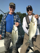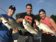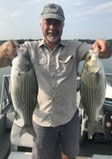 Fantastic fishing continues with many hybrids coming over the side of the mini mamba. Along with those fish are many smiles. Definitely a lot better compared to last year and things are back to the way it should be....with many doubles, triples, and quadruples on. The last few trips we also seen some of the bigger hybrids. Most fish averaging 5-7 but the bigger ones pushing close to 9-10. I also had to go down to four rods compared to my normal six. I feel naked with 4 rods!