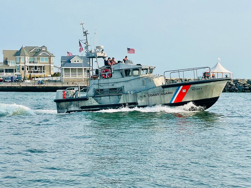 That coast guard boat was headed out to a boat that took on water off Long Branch. Boat was effed but 3 rescued.
