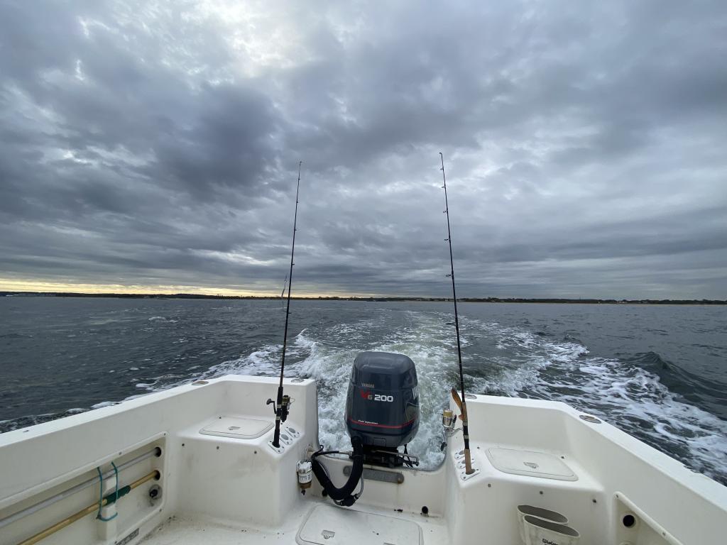Decided to get the hell out of the mess and went shallow and found the fish. Hearing of everyone catching 30-40-50 pounders (in the reports anyway) yet we managed to find the 26-28 inch bass. Followed a single bunker pod for almost 2 hours picking bass on the outskirts of the school the whole time while being all alone. A hooked bass was followed up to the boat by 2-3 others.
