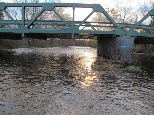 Started up by Hamden Rd near Clinton, got 1 and rolled one, got a small LMB and saw a big bald eagle. Down a bit further got another one, one small SMB at Camp Carr. Tried following the river but there are a lot of road closed signs with bridges washed out, still some crazy stuff. Hard to wade many spots with the water still quite high, water was tea colored also. Winds came up and the leaves came down so I went to to the main stem, nothing, and access to the Headgates dam is still closed.