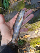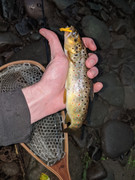In September I went up to the Catskills and bounced around some streams up there. Only caught one fish, but it was my first ever brown trout which I caught in the west branch of the beer kill. The water was high and a bit stained. I released the fish.