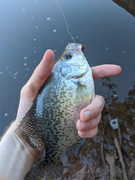 In October before the stocking, I bounced around the north branch of the raritan a lot, since that's close to me. Caught a ton of smallmouths and sunnies, but the most noteworthy were a big bass that I caught under the rt 22 bridge in early October, and a crappie that I caught twice an hour apart on two different presentations... luckily I took a picture the first time! You can definitely tell by the little dots on its fins! The crappie was at North Branch Park. The whole stretch of that park was great from late summer to mid-fall for smallmouth and sunnies with a couple of crappies too! Wherever I fished on the north branch, I usually used trout magnets or spinners, plus some ned rigs under bridges targeting the big boys.