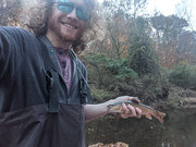 I hopped out to a stream yesterday and fished for a short amount of time just before dark. I parked at a bridge on the Raritan north branch, but ended up wading up a tributary for a quarter mile or so, then BAM! This guy hit my trout magnet from behind a boulder!! He fought hard and was really flinging around out of the water splashing and making a scene, and surely spooking off every other fish in the pool!
