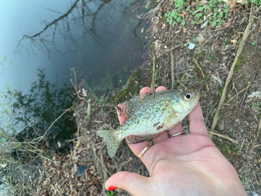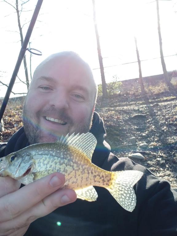 4/9/22- Woke up & headed down to coal mining country in deep southern New jersey. Figured with trout opening & the bass run being ON! We'd have the lakes to ourselves but nope! Arrived at Lake Hepburn & found the spot we wanted occupied so we did some exploring. Hiked a good bit may of even burned a calorie with not much to show 1 yellow perch for me & dev got some small pumpkinseeds & bluegills as well as a new turtle friend. Decided to look if the spot we wanted was open yet & it was. Well the sacalait were where we left em in November stupid fishing for 11-15inch crappie as many ya wanted. Dev even brought out the blowhole glass rod & was jigging em up right under us. As we drew a crowd we decided to head out & top off the day with some Bridesburg barracuda. Went through every minnow we got from Sharkeys Bait and Tackle on the cedar ponds. No monsters but ur run of the mill coal mining country fish 12-18inchers. Made a detour & saw the famous palace of depression in Vineland. ended the night with some 10% IPA's & my draft kings getting crushed perfect saturday