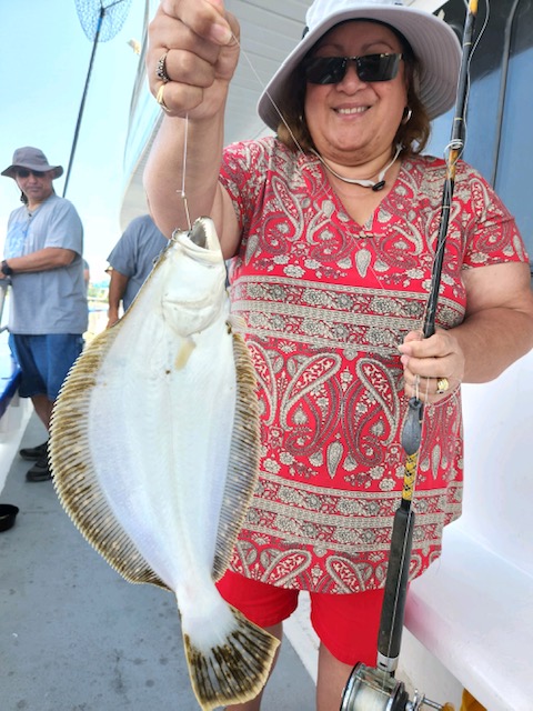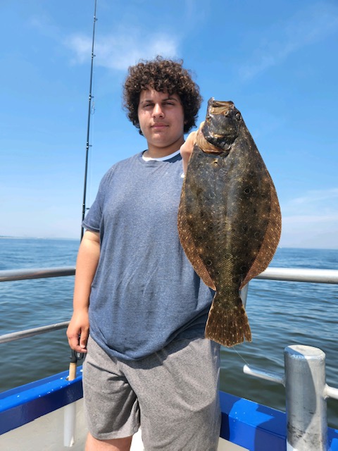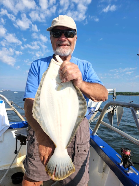 We were out again on a very beautiful summer day with some really nice family folks aboard. We landed some limits again with shorts in the mix. Looks like everyone is going home with dinner. Really like the new law at 17 inches. Capt. George of the Angler has been coming out all season. It's always a pleasure having him on the boat. Plus, he shares with us his knowledge on where and how to catch more keeper fluke. Sometimes he's even working the throttles up in the wheelhouse. Today he enjoyed the day relaxing and fishing at the starboard bow where he likes to fish. It's going to be a nice weekend coming up - Sat., Sun. and Monday. Don't let any showers in the forecast stop you from coming out. We will definitely be sailing.