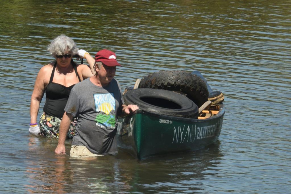 The HUGE tractor tire was too heavy to get out of the river (near Opie Rd.) Good to be back in NJ, great to be cleaning rivers again !! |
