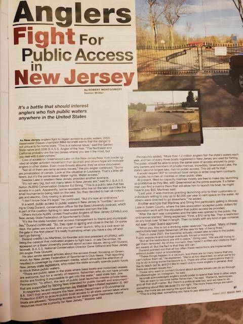 It has been brought to our attention that the fight for a public boat launch ramp / access on Greenwood Lake was highlighted recently in B.A.S.S. Times, a publication of the B.A.S.S. Bass Anglers Sportsmans Society. This information reaches 48 of the lower states! Also, what we face is not unique to just our area.....there are MANY examples outside of NJ which are similar. PLEASE, as suggested in our previous post, make a few calls to legislators to solicit their support as a sponsor to S987 or A1047. The owner of this site was nice enough to include a list of all legislative contacts in the previous post. He also gave an example of what could be said to aids/office managers, etc. Remember it's more DEMOCRATS that we need, however anyone on either side is STILL more than welcome to sign on as a sponsor ......the more the better....this will push the bills through when the legislature reconvenes. Please think about attending Fish and Game Council Meetings.....voice your support for public access during the public comment period. You are all vested stakeholders....anglers who paid for licenses that help stock the lake. We now have NATIONAL ATTENTION! Thank you all for your support/input....and please continue. All of you enjoy your summer and be well. UFANJ ![]() ![]() ![]() PLEASE continue to make the calls!.... takes only a couple of minutes. |