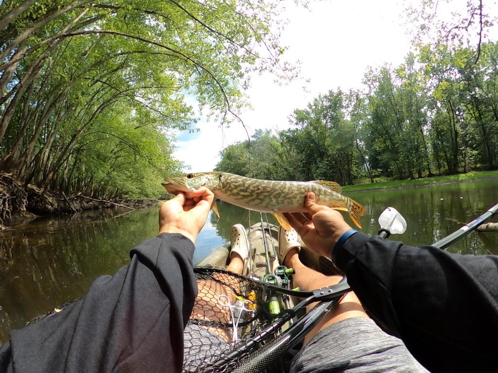 Caught this Pike. Noticed some very distinct and unique patterns. Started thinking it could be a Hybrid. My best guess is pickerel x pike, I also thought it looked like a Redfin pickerel (in which case it would be a state record)