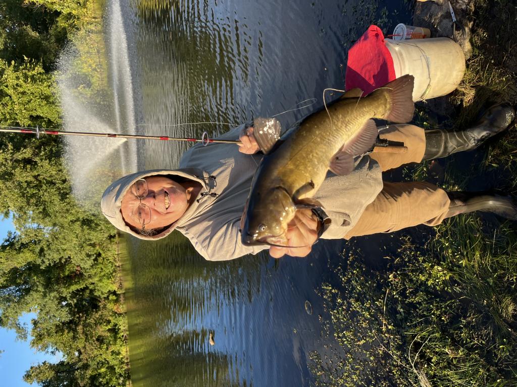 Caught and released a 16.5” 10.5” girth 2.35 lb brown bullhead in 69 degree Colonial Lake this evening with ShopRite canned whole kernel corn on a #4 long shank gold hook and 12 lb test line. Weighed it on a certified scale at Grumpys Tackle in Seaside Park, NJ, in order to apply for an adult division NJ Skillful Angler Recognition Award.