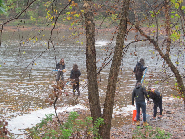 Classroom doing maco studies at Duke Island Park. Garbage dumped at North Branch.