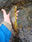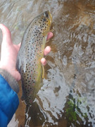 I fished a new creek and found a bunch of hungry browns. Small but all colored up really well. Darker and more gold than the other browns i tend to catch. It was every one of them with the same color scheme and was really neat. Later that day i fished another, familiar, creek and got some better browns. More normal colors.