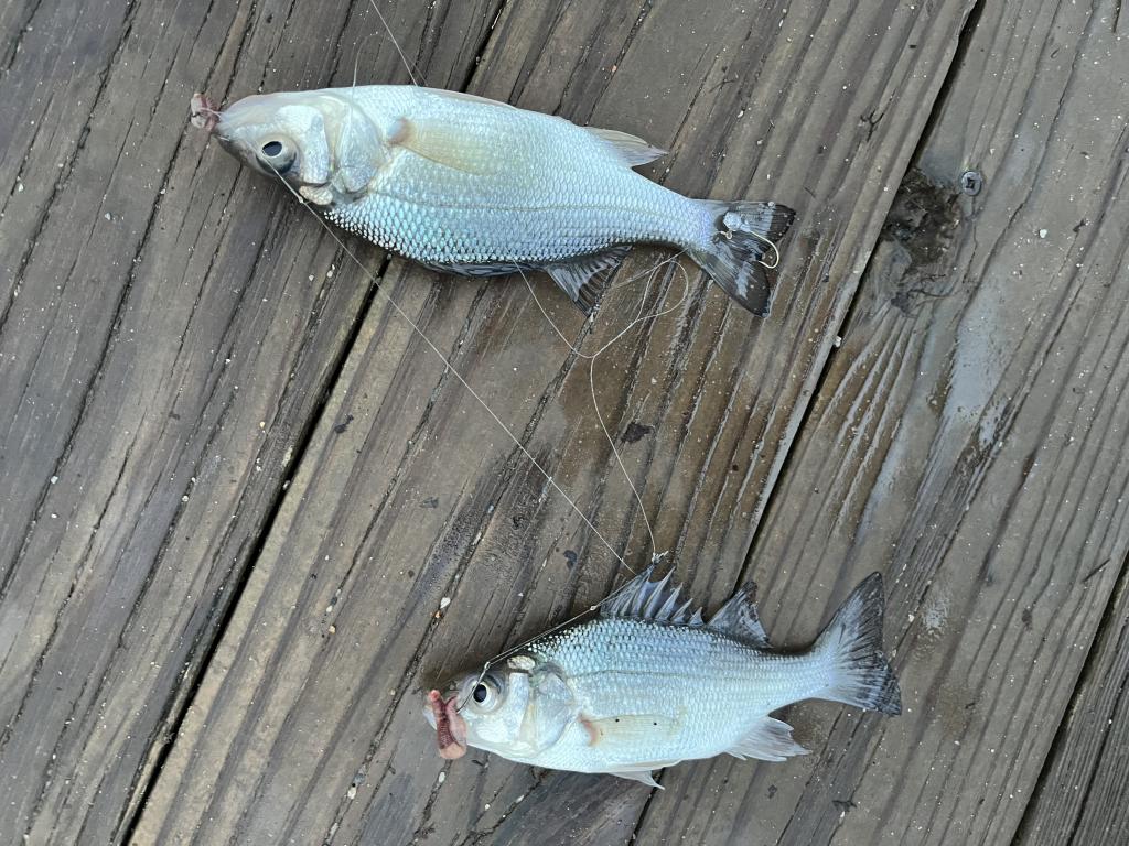 After catching nothing with lures on my last 4 fishing trips, I went to Walmart, bought a container of red worms, then caught and released 16 white perch including 2 doubles and a bluegill in 48 degree Carnegie Lake this afternoon in the fog. Looks like Walmart red worms catch more fish than Gulp. I’m averaging 17 fish per NJ freshwater fishing trip this year.