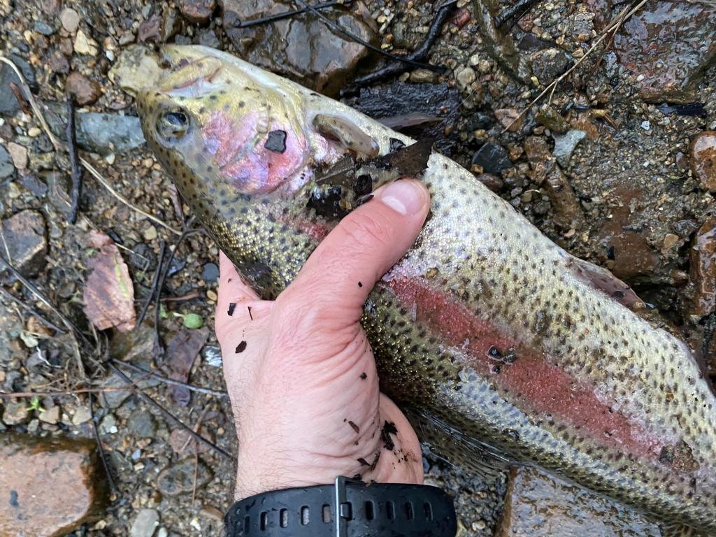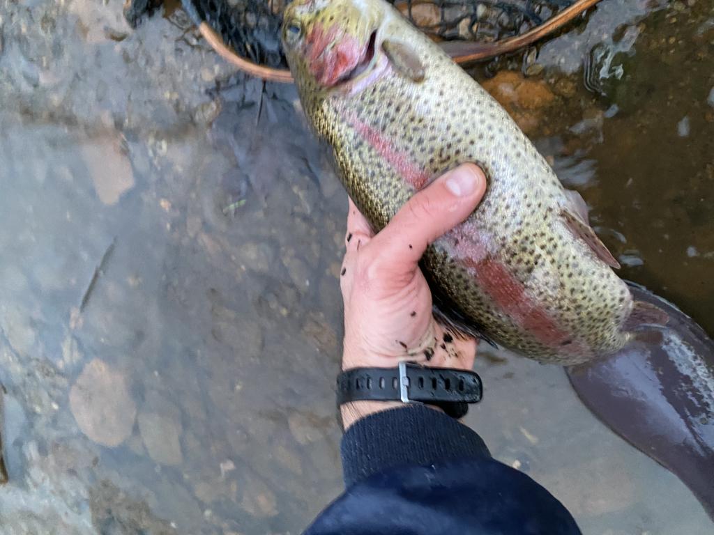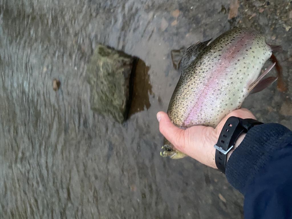 Hit the streams yesterday for some trout. Caught 3 nice rainbows and 1 fat sucker. They all hit between 4:45 and 5:15, with a few missed hits. Must have been feeding time. Kept one for the dinner plate, released all others.