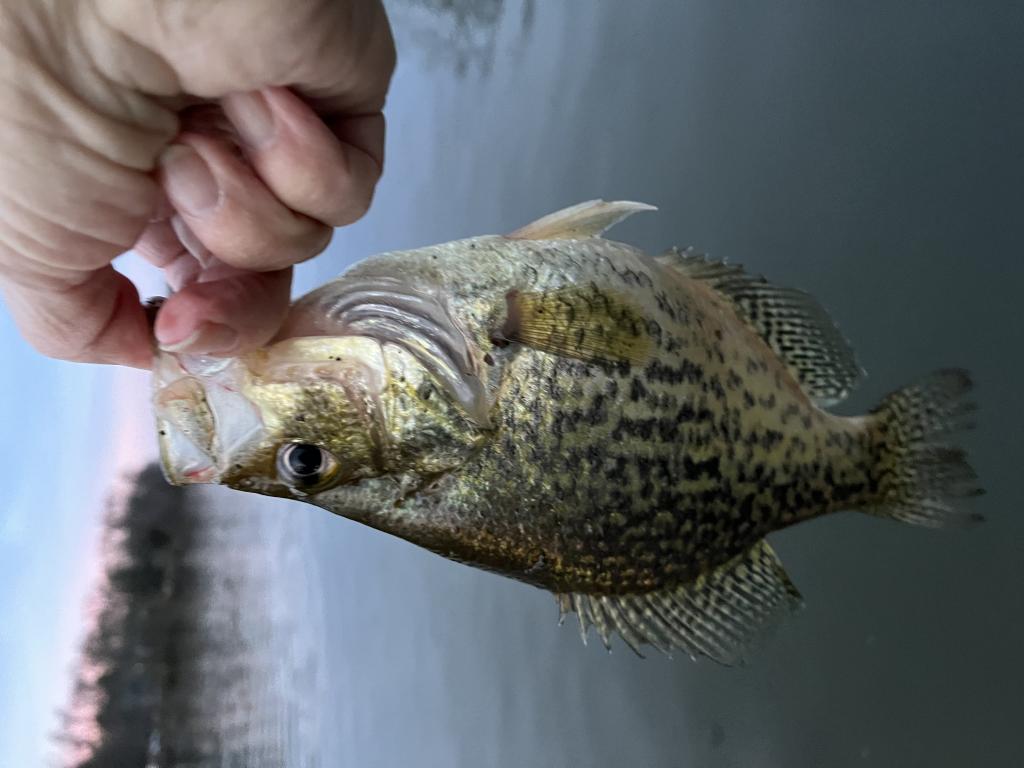 Went fishing in 48 degree Carnegie Lake this afternoon on a cool, sunny day in a sou’easter gale before a rain storm. Caught and released a gizzard shad, 3 shiners, 3 yellow perch, 5 black crappies to 11” and 8 white perch. Most of the fish hit a black 1/32 oz leadhead jig and 1” blue flake twister tail on 2 lb test line. Caught a few white perch with Walmart red worm 🪱 halves on two gold hooks and a 1/32 oz unpainted leadhead jig on 4 lb test line. Caught nothing with worms on 12 lb test line. Landed 1,043 fish in 43 trips this year. Saw 8 other fishermen catch crappies today. An adult bald eagle was in a nearby tree.