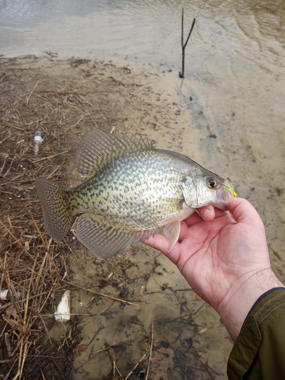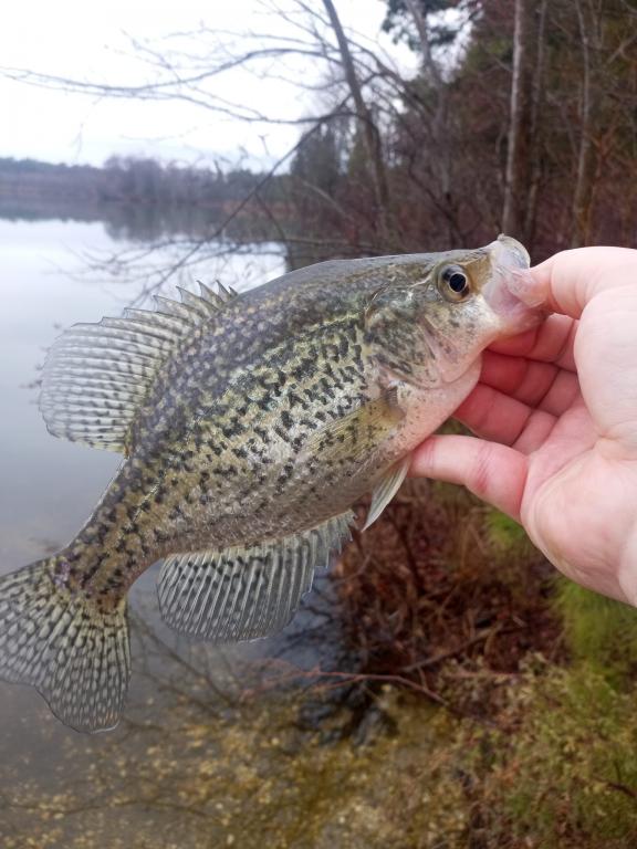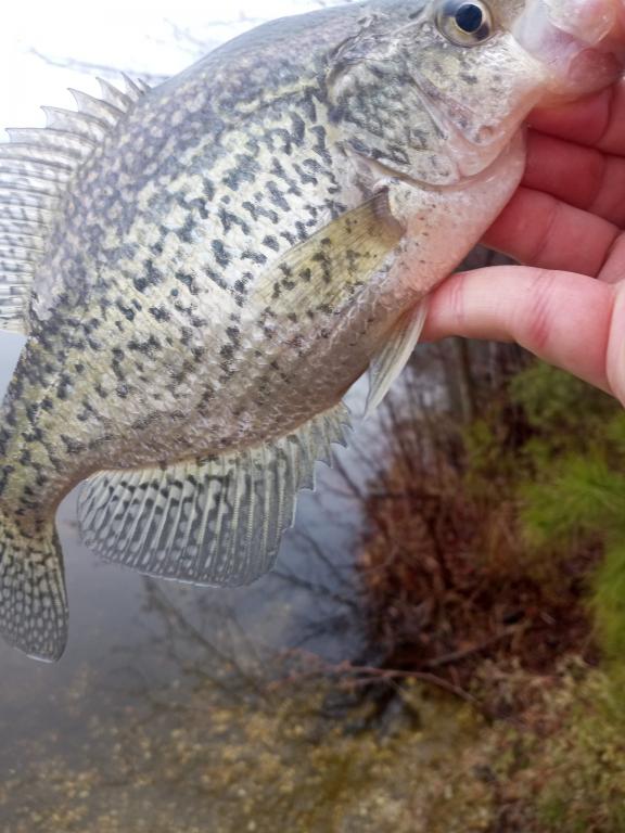 Was called to do my civic duty yesterday for the city, was cut out at 12:45 so i took a ride down to atlantic county. Had 2 real nice slabs before the rain & wind made casting impossible. Waited it out & dried off in the vehicle & hiked up the otherside of the lake, was rewarded with a nice catch of solid sacalait. had them trying to eat the float a few times but they wouldn't hit a topwater