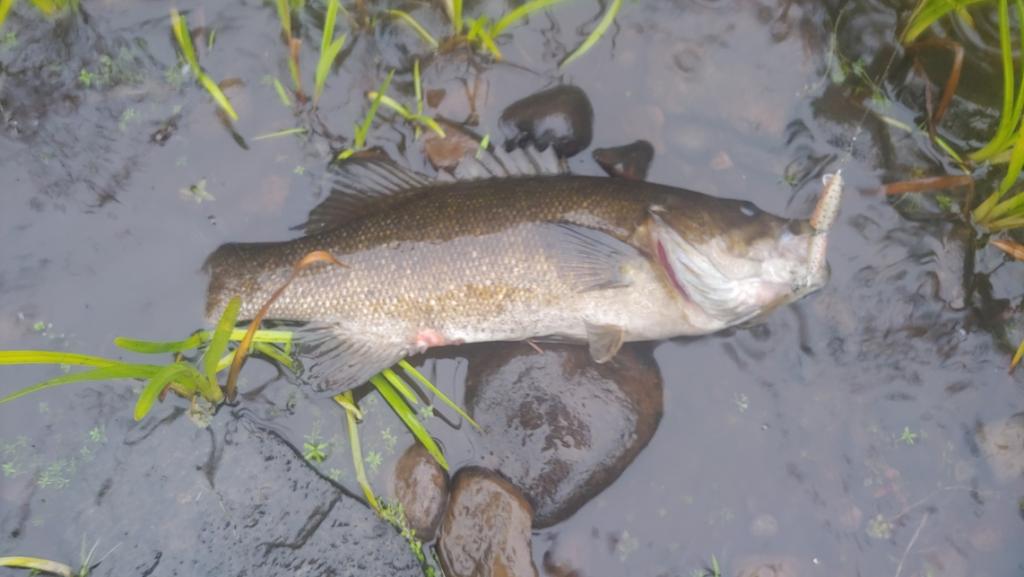 Water depth: relatively low despite a few recent rainstorms. Sky: cloudy; intermittent rain with one good downpour. Air temperature: ~70 degrees Time: 10:30 - 6:30 Bait: Small plugs including the jointed Rapala; #2 size Mepps, Panther Martin and Thomas spinners. Fished a three-mile stretch of the Tobyhanna in State Game Lands 127. Result: Eight smallmouth in the 1 - 2.5 pound range, seven standard-sized trout, about a dozen smallmouth and trout in the 6-8 inch range, one small perch, and one small pickerel about 1.5 pounds. The banks are often very thick and/or swampy, reducing your mobility. It is often easier to stay in the water and walk upstream against the current than to try to walk on land. The Tobyhanna is not a deep stream; most of the time the water level was at the mid-calf range. There are nice, deeper holding areas and runs, but you have to seek them out. In his work "Trout Streams and Hatches of Pennsylvania", author Charles R. Meck rates the Tobyhanna two out of four stars. After my experience there, I concur with his opinion. However, there is private, club-owned water farther downstream which you would assume is most likely superior to the publicly accessible stretch in SGL 127. |