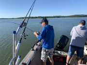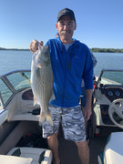 This past weekend had some guide trips to do. Saturday little got his first couple hybrids under his belt just in time before he headed to boy scout summer camp. Sunday we had over a dozen nice hybrids one that would have won last week 🙈 a nice smallie in the mix too. Finishing up my last couple summer hybrid trips up in the next couple weeks. Good luck if you guys get out!