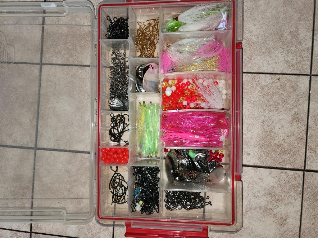 Blades, clevises, squid skirts, flash skirts, 3 way swivels, beads, hooks, etc. Good offseason/winter hobby while awaiting next season!