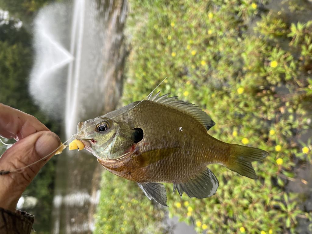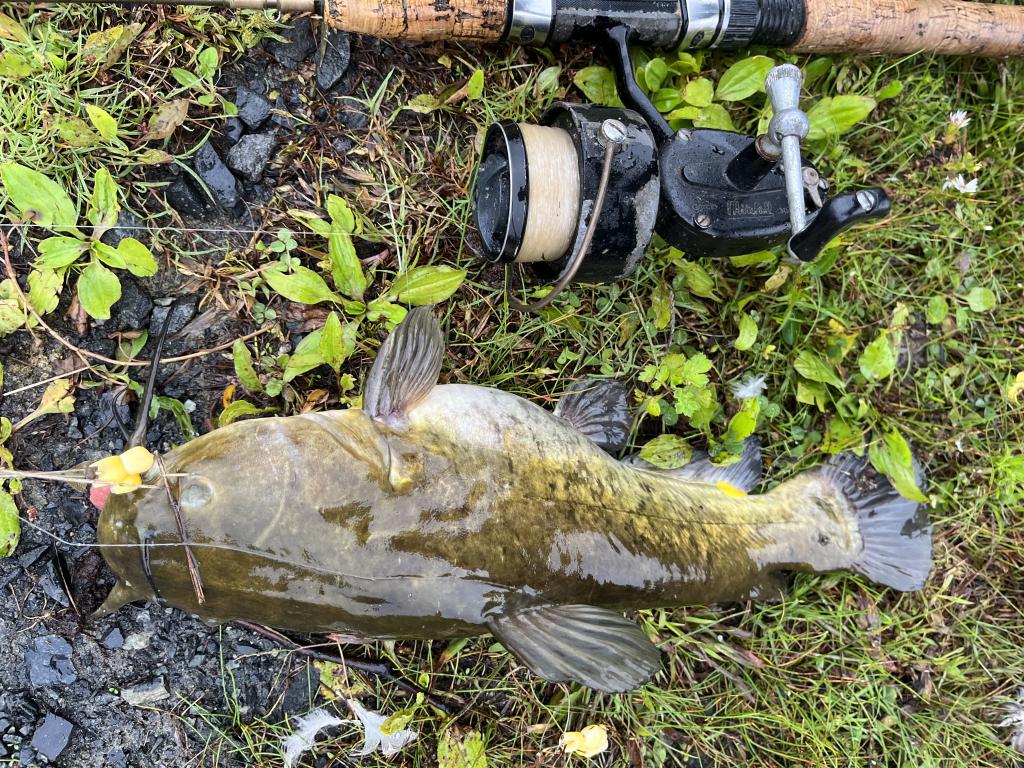 Went carping in 64 degree flooded Colonial Lake this evening during Hurricane Ophelia. Air temp was only 58 degrees. Got cold and wet. Saw two other fishermen. Few people were out in the cold rain. Threw out a can of corn 🌽 for chum, then caught and released 2 bluegills, 2 golden shiners and 3 brown bullheads to 14” with Bowl and Basket whole kernel corn on 12 lb test line. I’m applying for my 14th NJ Skillful Angler Recognition Award 🥇 for this year with the 14” bullhead.