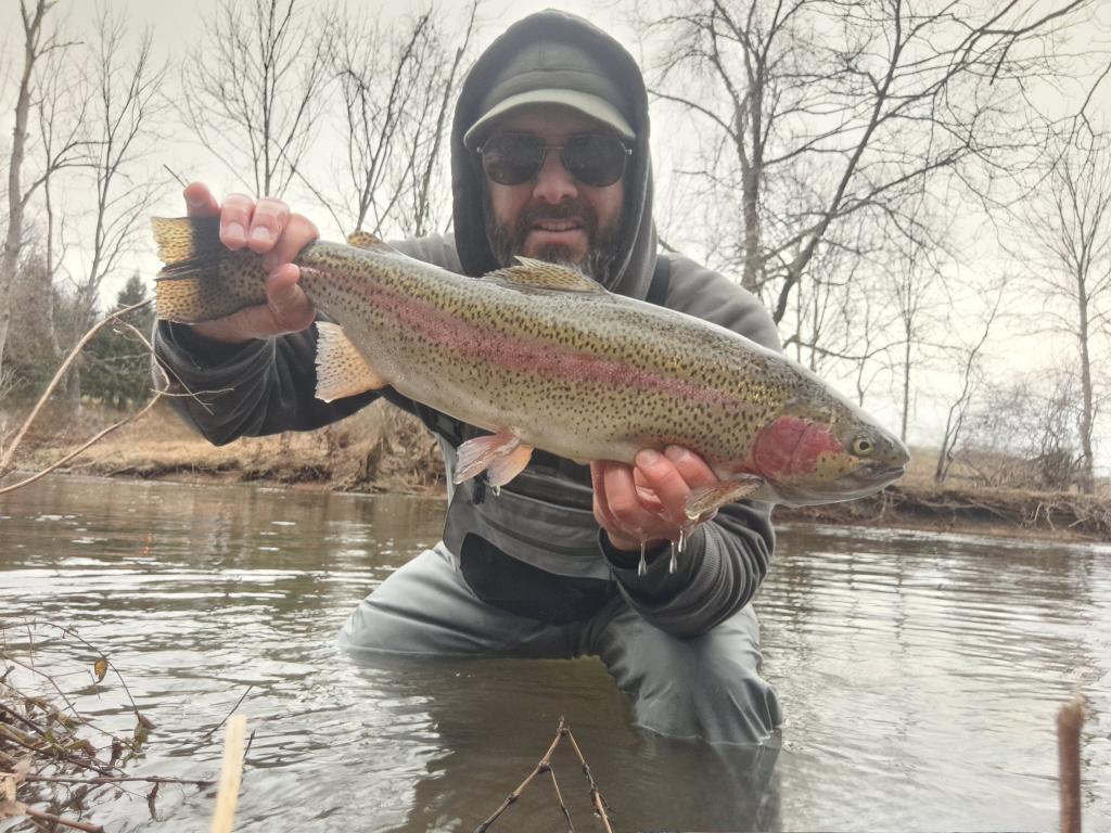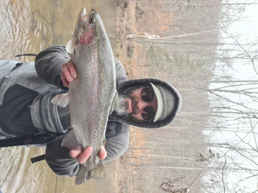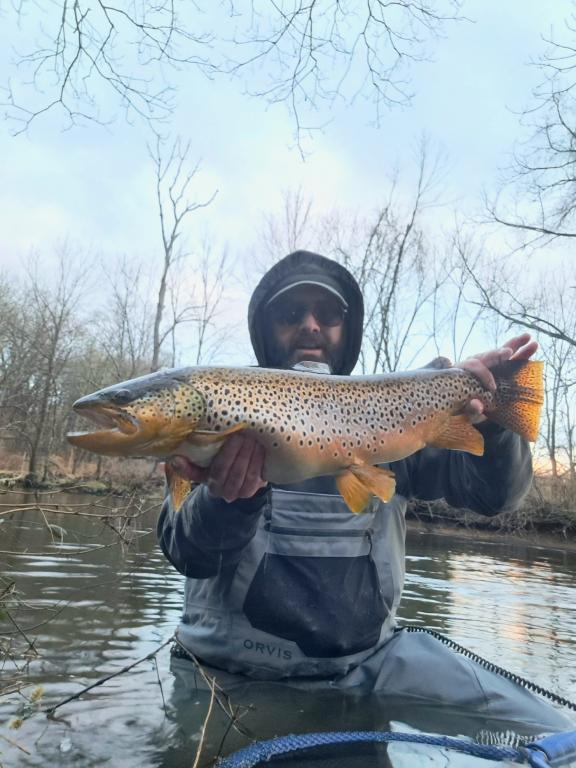Been suffering in the cold rivers waiting for ice fishing season. Nabbed a big fat brown on a fly Joe and I made (thrown on ultra lite spinner, don't like it? Too bad haha. That one was just before new year. Then the other day before the snow, since our NY steelhead trip didn't happen, I went after and bagged 3 nice "NJ Steelhead" drifting jigs.