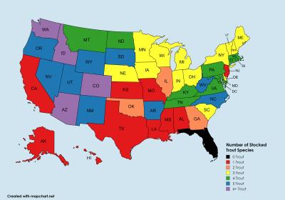 Here is the map Mike Avin made showing all the states and how many species they stock. It includes