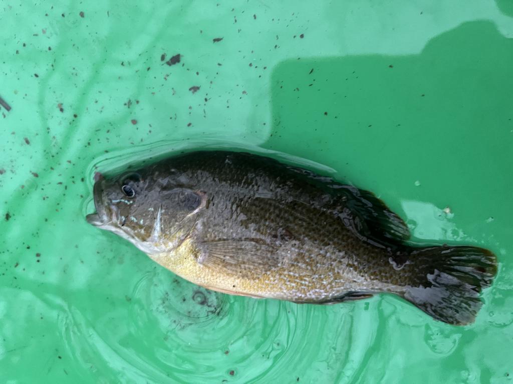 Went ultralight jigging in 62 degree Carnegie Lake this evening in the pouring rain during a 50 knot sou’easter gale. Was surprised to find 8 other fishermen there. Two were still there when I quit at night. Wore my Helly Hansen rain jacket and Grundens bibs. Got water in my Lacrosse knee boots when I waded out too far into the lake. Rowers were on the lake. Caught and released 7 white perch, 3 yellow perch, 3 bluegills, a largemouth bass, a black crappie, a golden shiner, a red breasted sunfish and a green sunfish with a tiny Temu green leadhead jig and 1” chartreuse twister tail on 2 lb test line. Catching 8 species of fish 🐟 in one spot with one lure was amazing. Used a Zebco spinning rod that Tony J gave me when he moved to Florida. Thanks again Tony. Saw carp jumping again. The lake will probably be a muddy flood with current tomorrow which will be good for carping but I may try Turnmill Pond instead. I don’t like fishing 🎣 where most of the fishermen kill most of the fish that they catch.