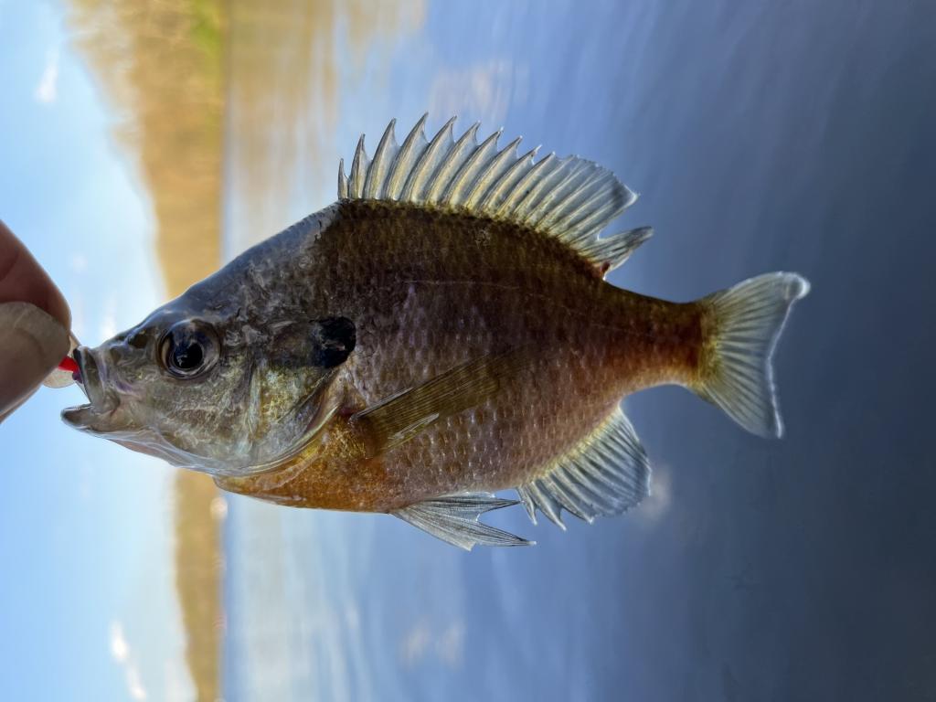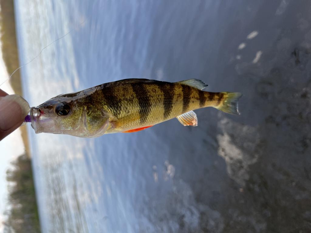Went ultralight jigging in 66 degrees muddy, flooded Carnegie Lake this evening on the hottest day of this year. Caught and released 5 bluegills, 3 white perch, 2 yellow perch, 2 largemouth bass, a black crappie, a golden shiner, a pumpkinseed sunfish and a red breasted sunfish with a 1/32 oz twister tail jig on 2 lb test line. Didn’t see the 16 other fishermen catch a fish 🐠.