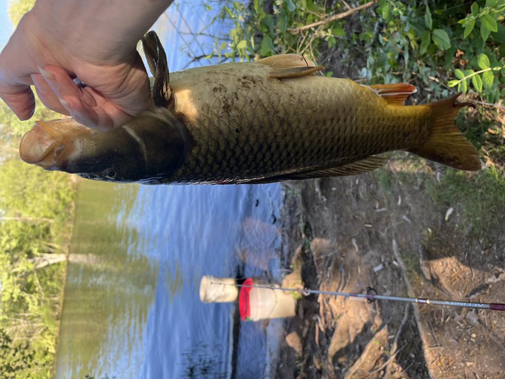 https://youtu.be/90wxsNWnXtw Went carping in 72 degree Carnegie Lake this afternoon on a hot, sunny day with a light south wind before a cold front. Threw out canned whole kernel corn 🌽 for chum, then caught and released 4 bluegills, 3 white perch and a largemouth bass with a 1/32 oz twister tail jig on 2 lb test line. Also caught 2 musk turtles 🐢 and a 20” 4.5 lb milt leaking common carp that swallowed my hook. A big carp stole my 3 hook rig by wrapping my line around a downed tree, then breaking off. I made a video of a northern water snake 🐍 swimming across my fishing 🎣 spot.