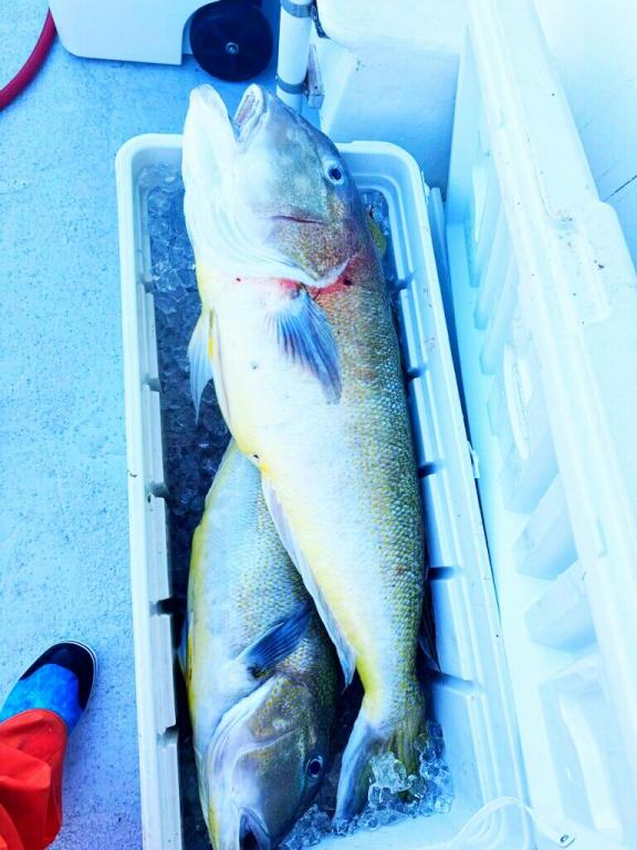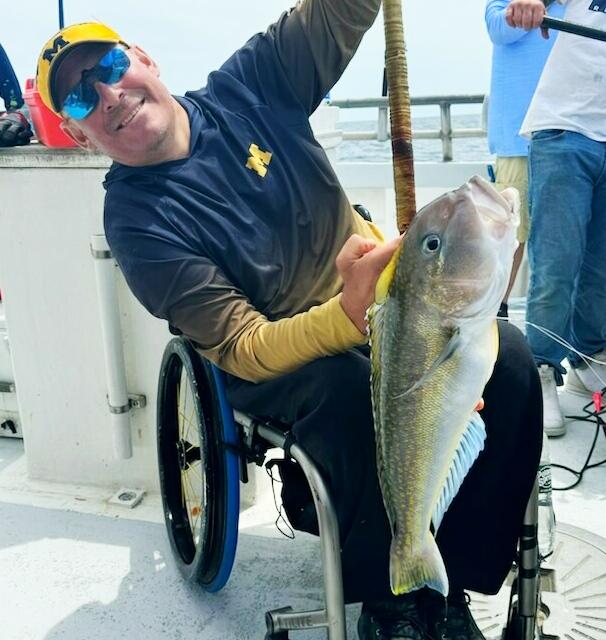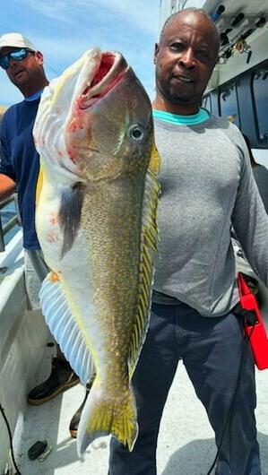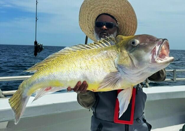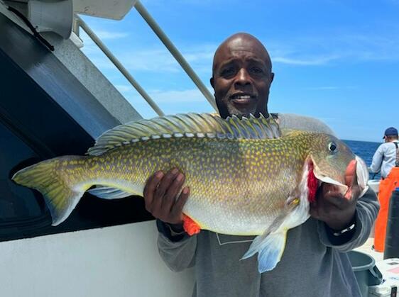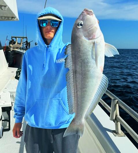 We started out a bit shallower, where we had caught some big bluelines in the past, but only landed a couple this time. Moved further East, into the deeper. We caught some tiles but had current against the wind, which made the fishing somewhat less productive. The boat did not drift as well or cover a lot of ground. We did catch some nice goldens. Most were 10 to 20lbs plus some bigger, including two over 45lbs. Edwin O. was out with us again and caught 3 up to 20+ lbs. Richie Wheels was out for his first time Tiling and caught 3 up to 15lbs. Gambler has one more trip, leaving the night of June 4th. The long range forecast is good and there are still spots available. Gambler has a limited amount of premium rental gear available. Call for details.