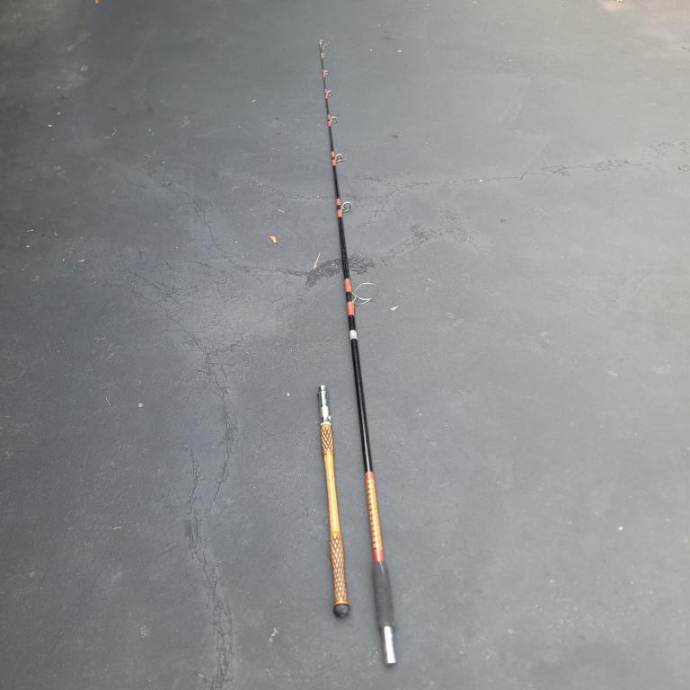 Hard to say for sure, but it looks like it might be a custom-built surf rod, maybe from the late '80s or early '90s. I’ve seen a few like this where the wood butt was added for distance casting or heavy surf fishing, especially in spots like the Jersey Shore. The lack of markings makes me think it’s definitely custom since factory rods usually have branding or specs. If it feels light for its size, it’s probably decent graphite, which was a big deal back then. I’ve picked up rods like this at estate sales before, and they’re usually one-of-a-kind builds.