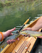 Hitched up the kolocraft driftboat loaded the tent and camping gear and headed up for a weekend to celebrate rob and Barry’s birthday. Got settled in and everyone was fishing at camp I ventured upstream away from guys and stuck a nice brown 18” maybe. Ran back got back up and deployed the boat and back-rowed upstream and we picked fish all the way back downstream back to camp. Couple nice fish through this stretch of river. Sat was the big float sewage plant to balls eddy. We fished evrey spot we could… a lot of debri in the water with the water being released made tough conditions but we stuck at it and got a few here and there. Rob got his birthday brown so I was happy.